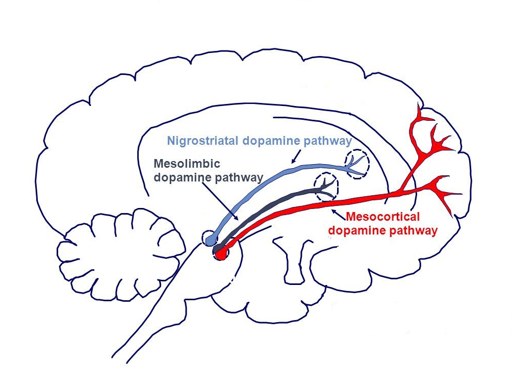Dopamine is mainly released from two sources, travels along three primary pathways, and reaches different areas of the brain. Each pathway has distinct effects, depending on where it starts and where it ends.