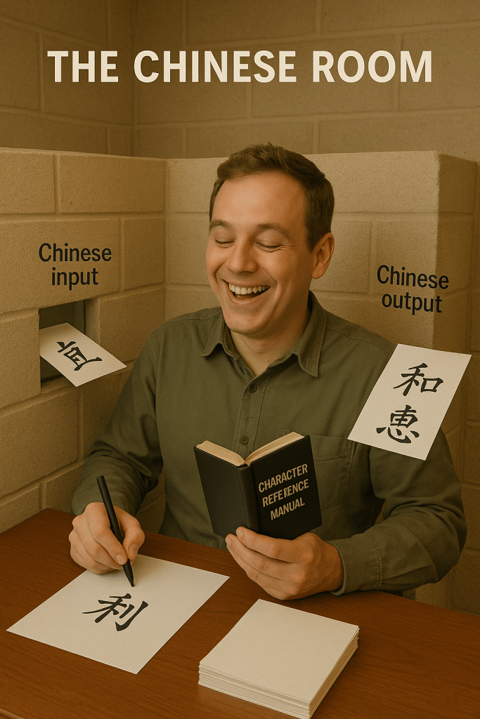 John Searle’s Chinese Room thought experiment, introduced in 1980, questions the difference between “truly understanding” and “merely producing correct outputs.”