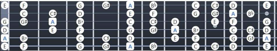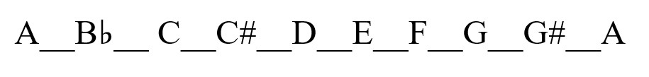 When we follow the same steps using A Phrygian and A Phrygian dominant, we obtain the Por Medio scale: