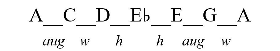 The natural minor scale is reduced to these degrees: 1 – 3 – 4 – 5 – 7