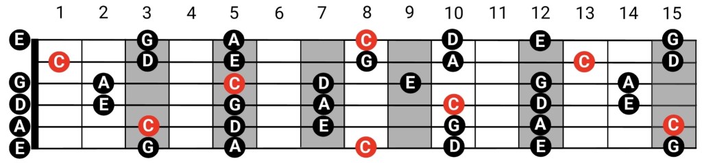 While a C major backing track is playing in the background, try exploring the C major pentatonic scale: