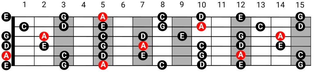 While a A minor backing track is playing in the background, try exploring the A minor pentatonic scale: